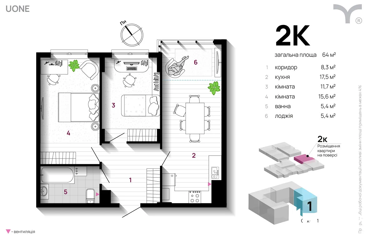 Продається стильна та простора двох кімнатна квартира площею 64,4 м2 у сучасному житловому комплексі U-1 (U-one) один із найкомфортніших комплексів району Каскад.