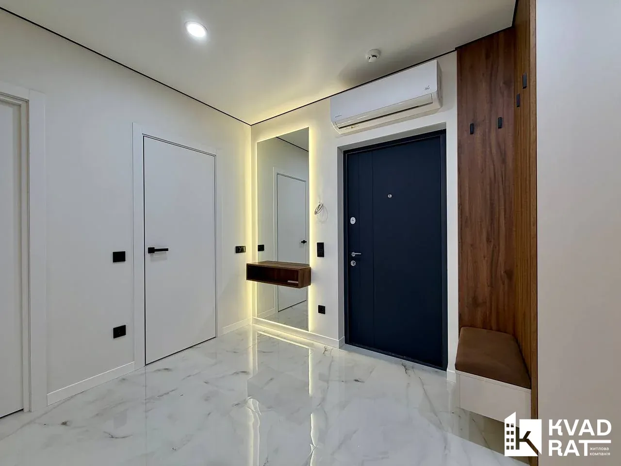 У квартирі виконаний якісний дизайнерський ремонт, укомплектована меблями та технікою ( доставлять диван у вітальні та двоспальне ліжко у спальній кімнаті, вони входять у вартість).