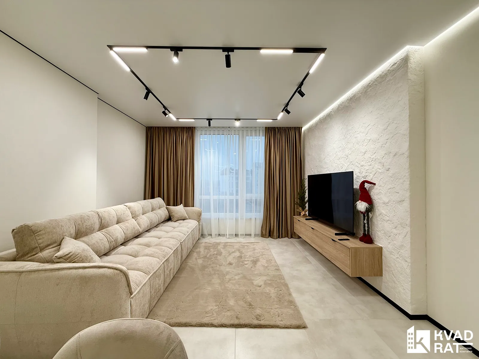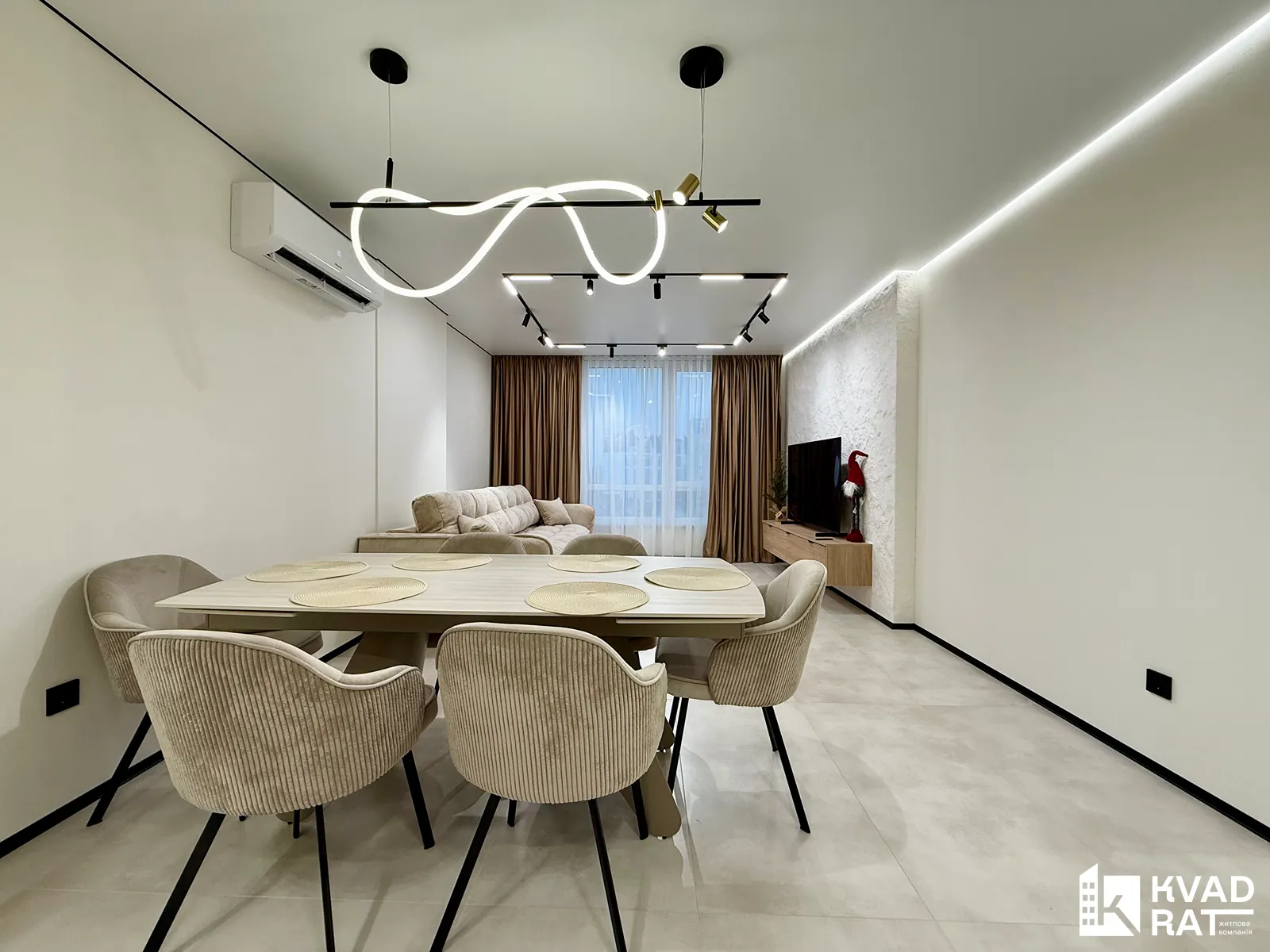 Планування продумане та функціональне кухня-студія для комфортного сімейного простору дві окремі спальні кімнати просторий санвузол та велика зона прихожої. У квартирі виконано якісний та стильний ремонт із використанням декоративної штукатурки на стінах. Усі меблі виготовлені під індивідуальне замовлення