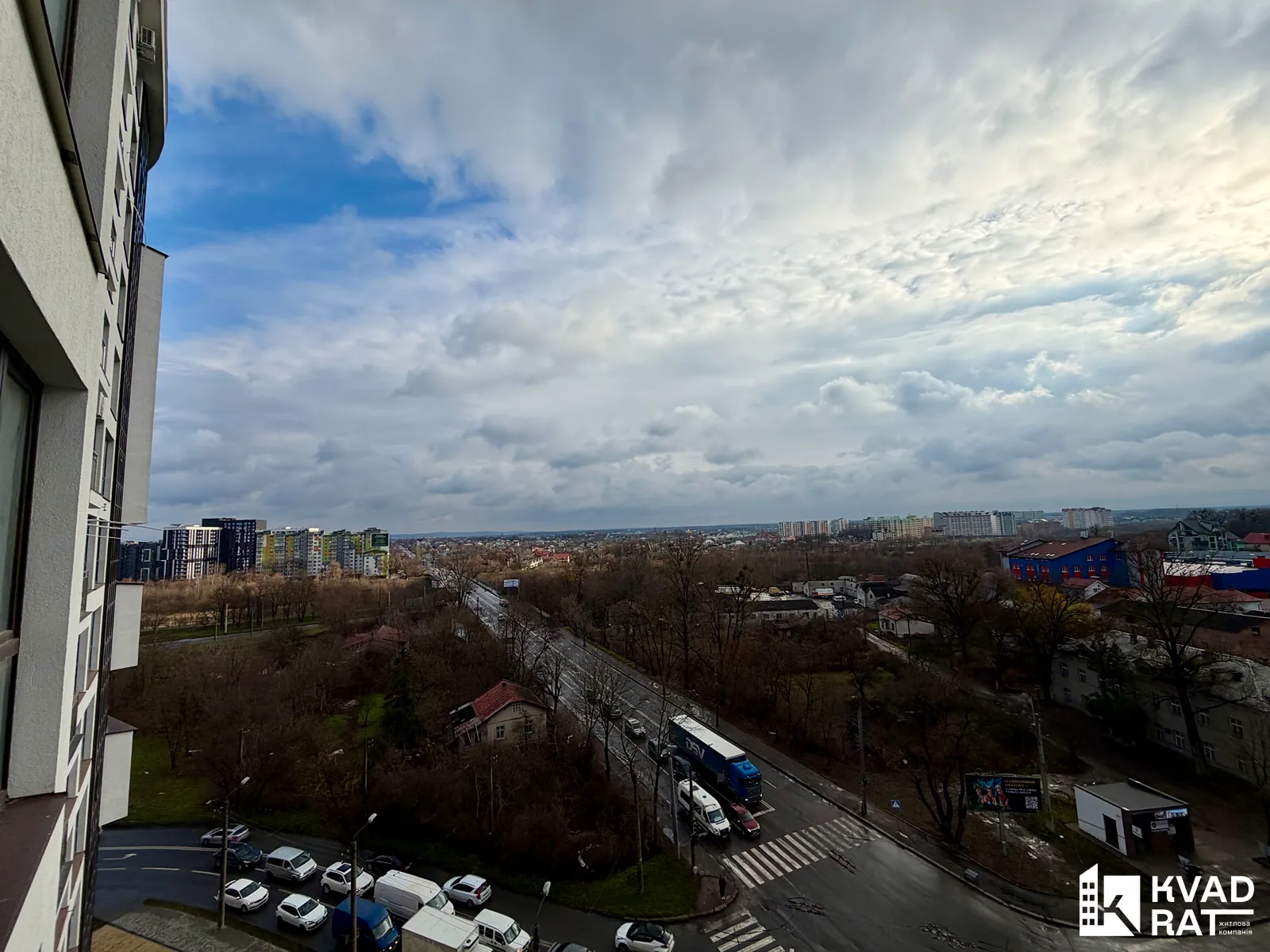Квартира площею 72.55 м розташована на 10-му поверсі та має повністю внутрішнє розташування. З вікон відкривається неймовірний краєвид у сторону Карпат: видно місто, річку та панорамні гірські лінії. Встановлені якісні алюмінієві вікна, що забезпечують шумоізоляцію та сучасний вигляд.