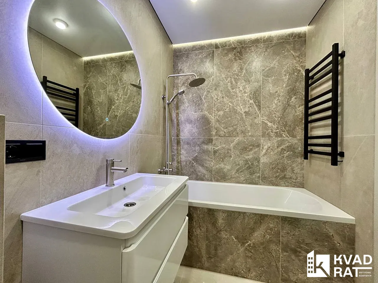 Квартира розташована на 11 поверсі з виглядом на центр та гори. Площа 41 м2 функціонального планування: окрема кухня та простора спальня, велика гардеробна та суміжний санвузол із ванною, при вході встановлений кондиціонер для зручного використання.