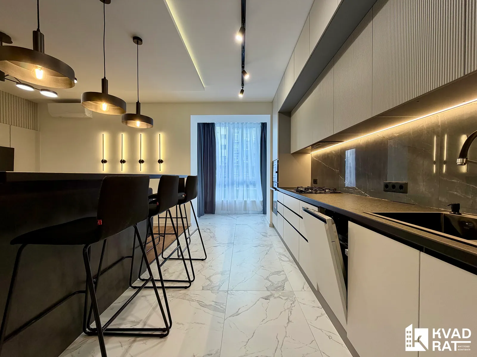 Зроблений сучасний дизайнерський ремонт, використовувалися дорогі матеріали. Квартира повністю укомплектована меблями та технікою, а саме: