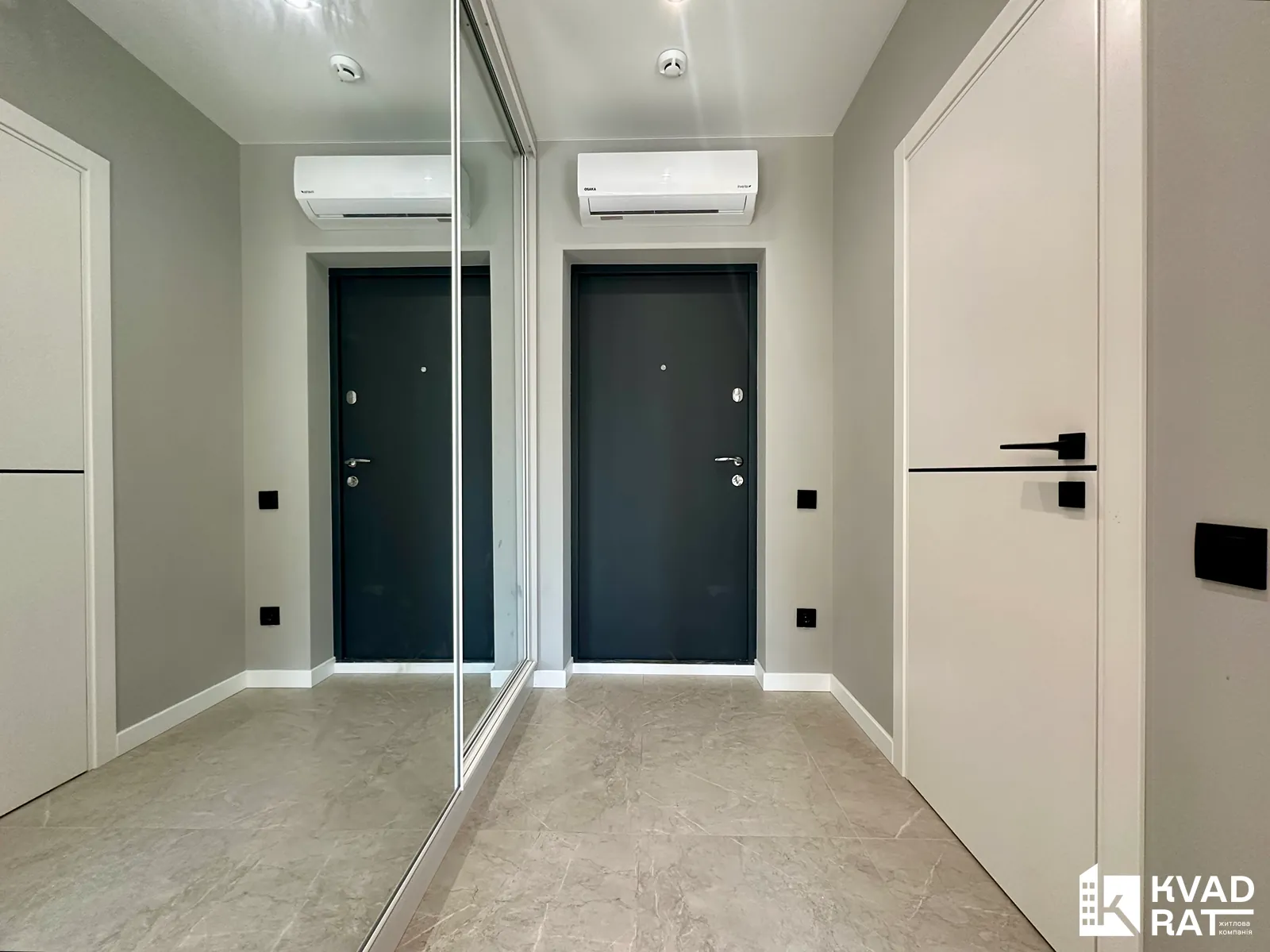 Кухня з виходом на відкритий балкою з виглядом у внутрішній двір житлового комплексу та окрема спальня з просторою гардеробною