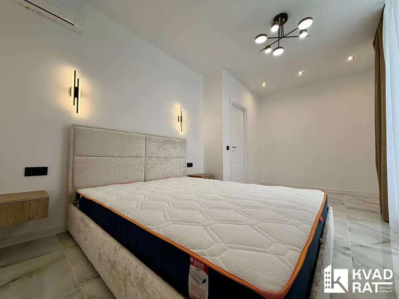 Квартира площею 44 м2 вдало перепланована у кухню-студію з видом на озеро, простору спальню кімнату з відкритим балконом, який виходить у внутрішній двір також є ніша під гардероб. Суміжний санвузол із ванною та вхідна зона із шафою та дзеркалом у повний ріст.