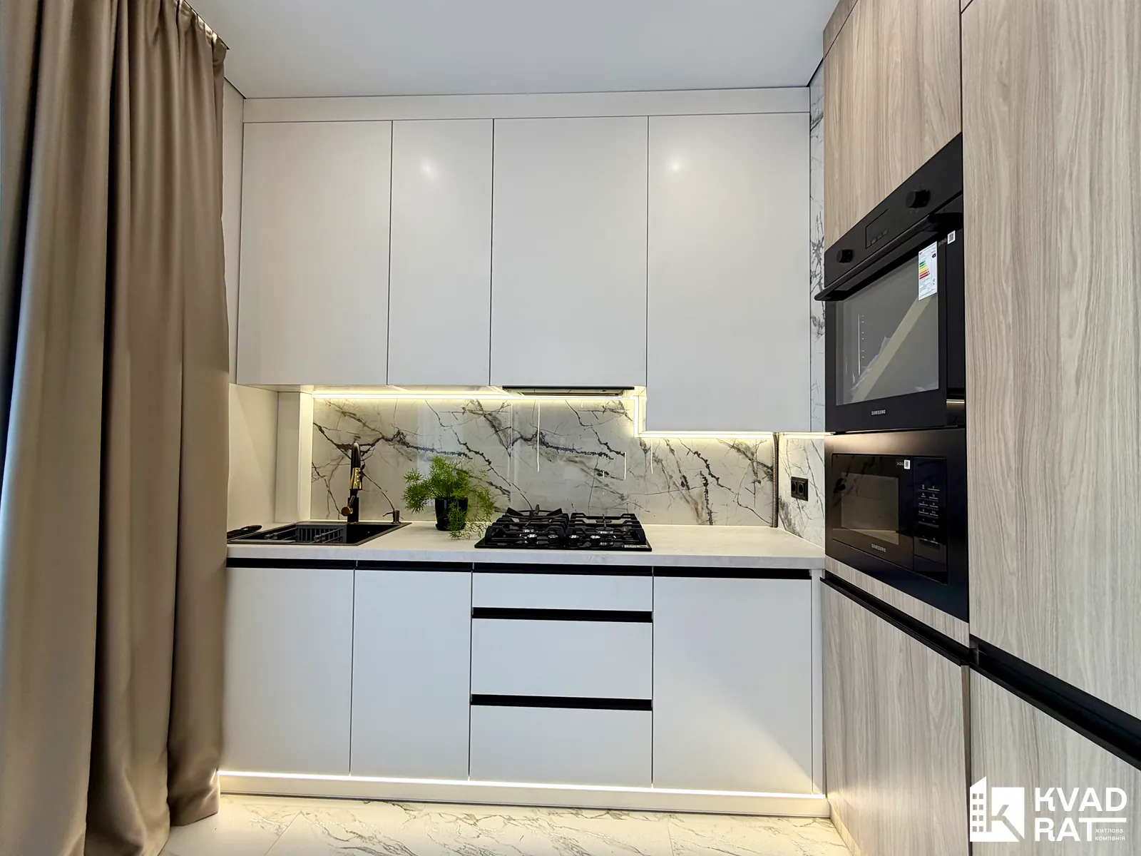 Стильна 2-кімнатна квартира з кухнею-вітальнею, розташована на комфортному 1 поверсі.
