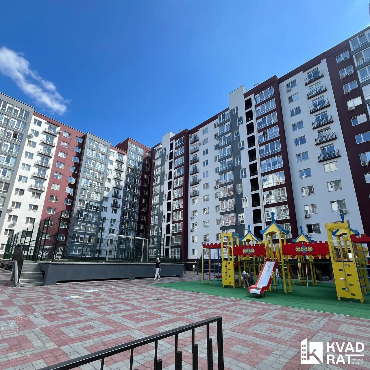 Комплекс закритого типу з підземним паркінгом, закритими пішохіднимо дворами, дитячі майданчики, приватні школа та садочок.