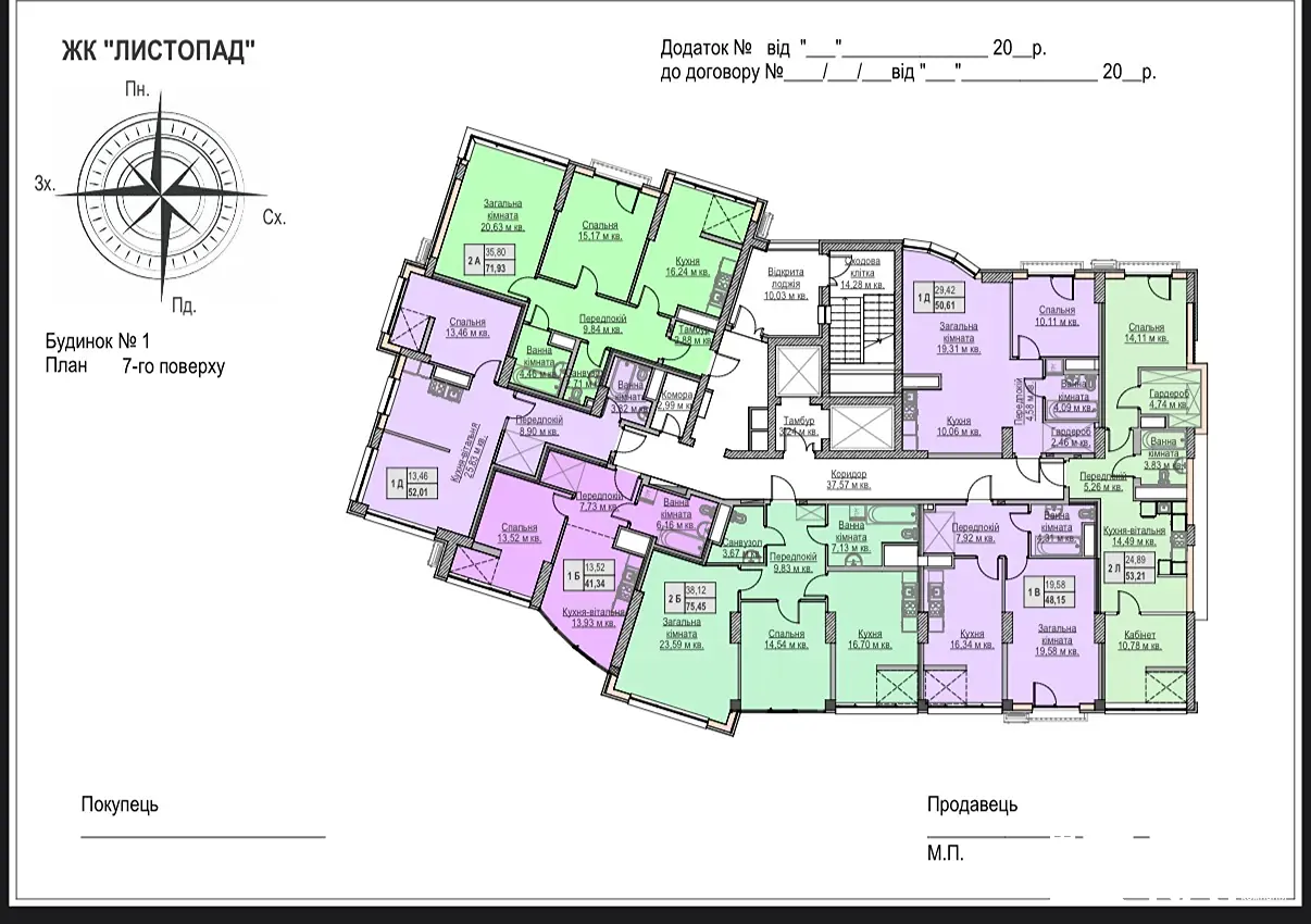 Пропонується простора однокімнатна квартира площею 53,5 м у сучасному житловому комплексі «Листопад».
