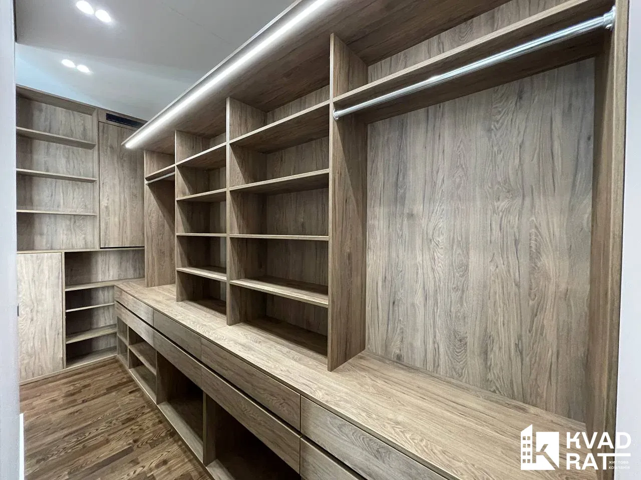 По всій квартирі встановлене точкове та трекове освітлення, акустична система.