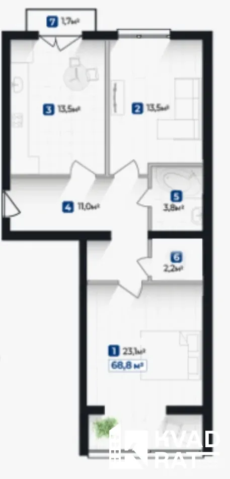 Двостороннє планування світла та зручна квартира з правильним розподілом кімнат.