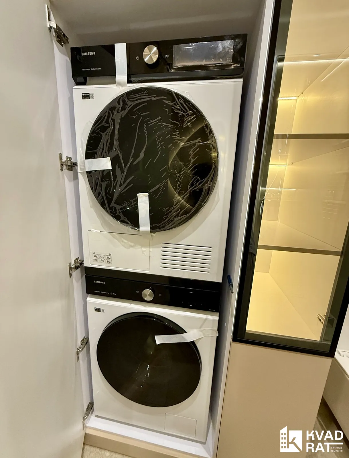 Продаж здійснюється разом з повним комплектом меблів та преміальною побутовою технікою: посудомийна машина Bosch, вбудований холодильник Whirlpool (394 л), варильна поверхня, духова шафа та мікрохвильова піч Whirlpool, пральна й сушильна машини Samsung, два кондиціонери Gree (працюють навіть при -30), а також два телевізори Samsung.