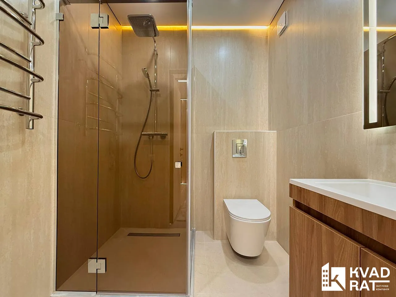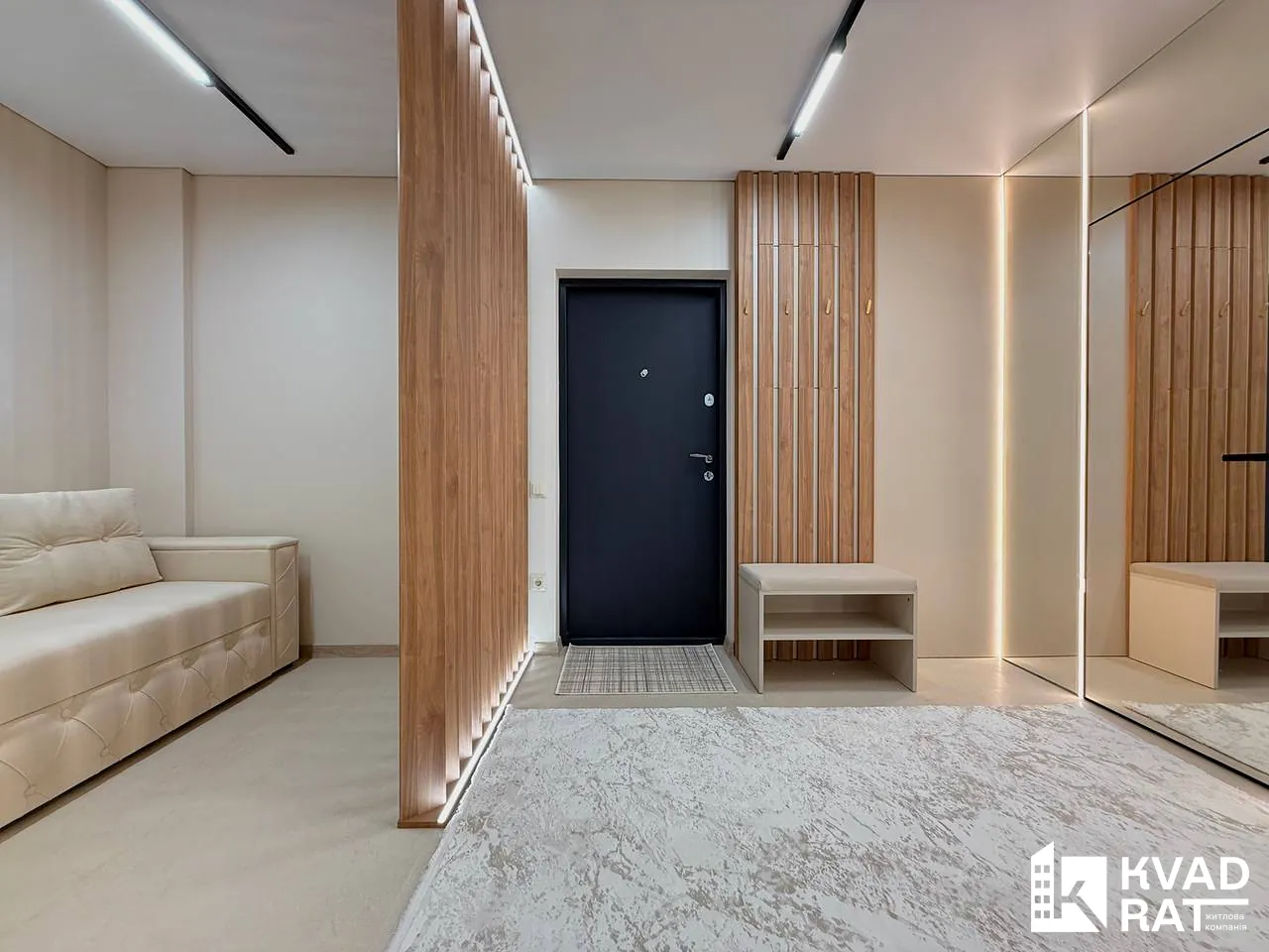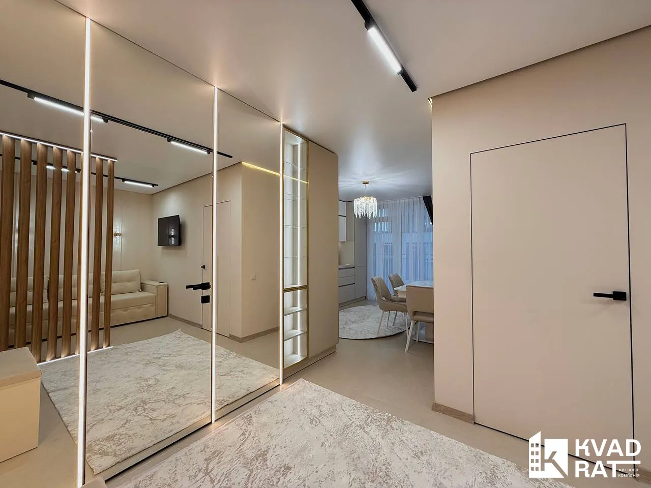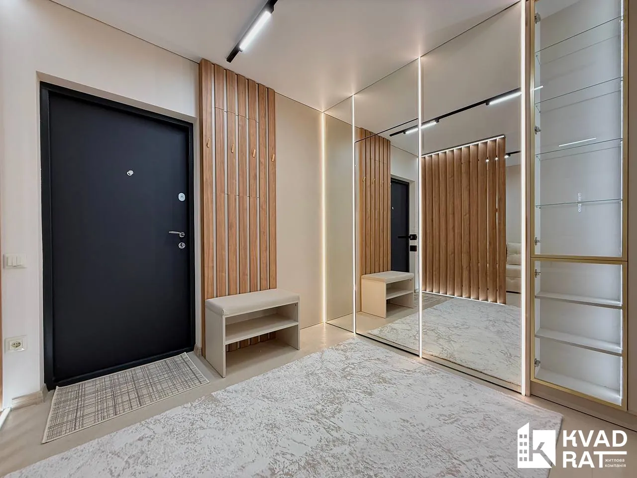 Встановлені двері прихованого монтажу, облаштована відділена вхідна група з дзеркалами, стиль і практичність у кожній деталі.