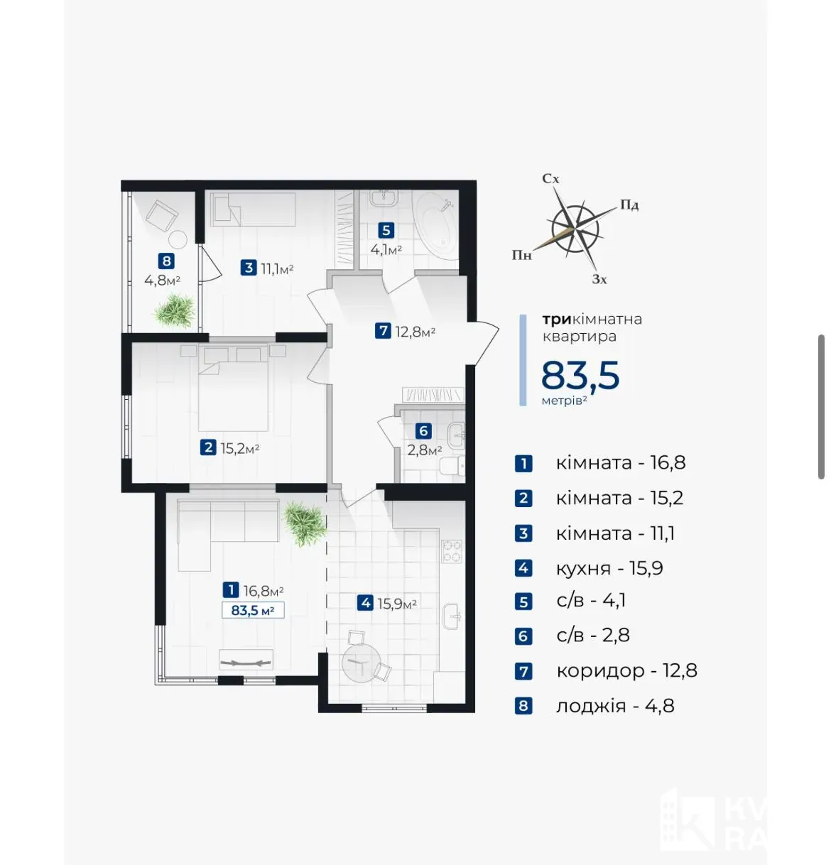 Senat Цікава 3-кім квартира з кухнею студією в готовому будинку!