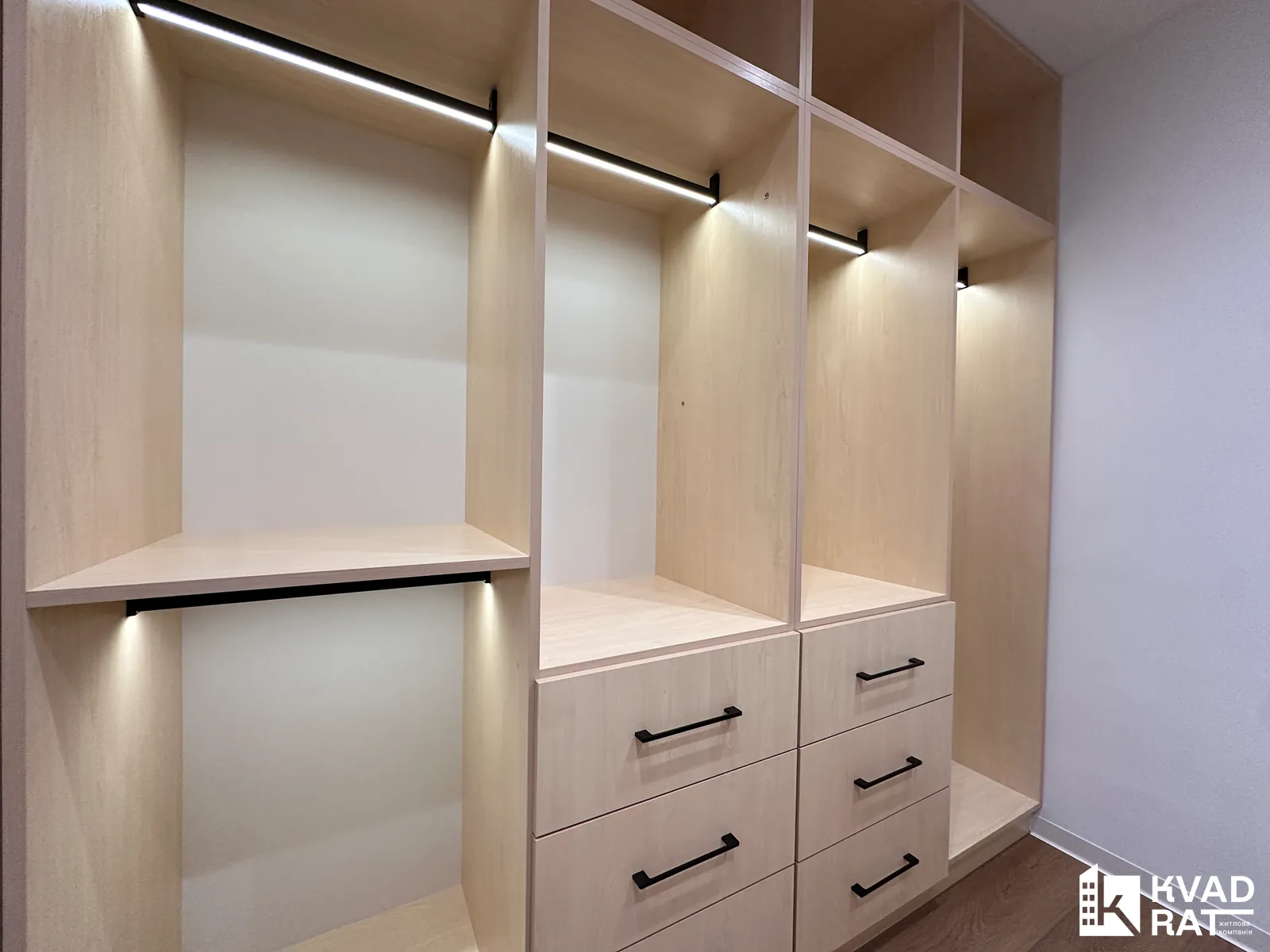Окрема спальня з повноцінною гардеробною кімнатою.