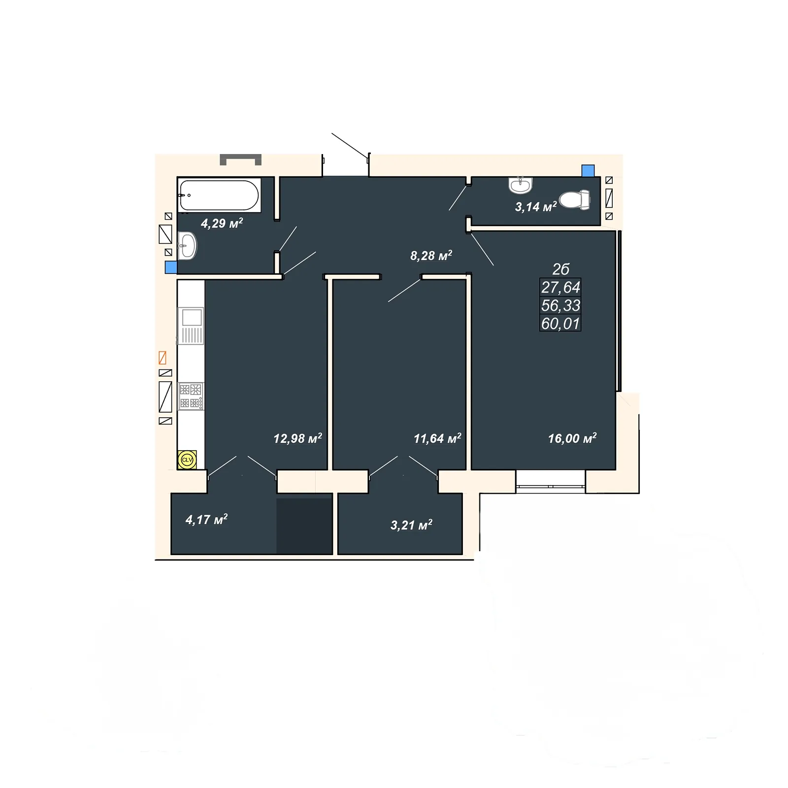 Пропонуємо сучасну двокімнатну квартиру площею 60 м на 9-му поверсі